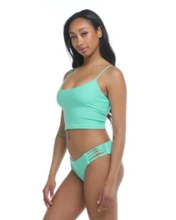 Trust us on this one: The Brasilia’s merrow edge construction will have your backside looking like a million bucks. Pair that with some strategic ruching and you’ve got a 10/10 silhouette. This cheeky coverage bottom is designed with dainty ring detailing and side ties to boot.